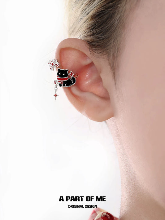 Happy New Year 18K Platinum Plating Black Cat & White Dog under the Firework Ear Cuffs