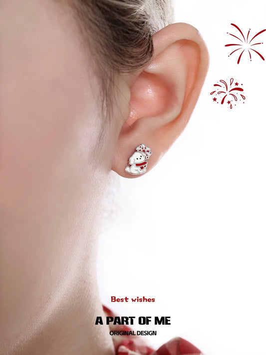 Black Cat & White Dog 18K Platinum Plating Christmas Stud Earrings