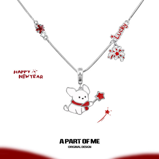 Happy New Year 18K Platinum Plating Black Cat & White Dog Changeable Pendant Necklace