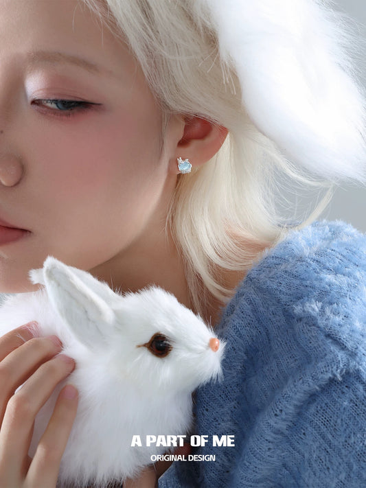 Snow Bunny S925 Sterling Silver Glass Beads Stud Earrings