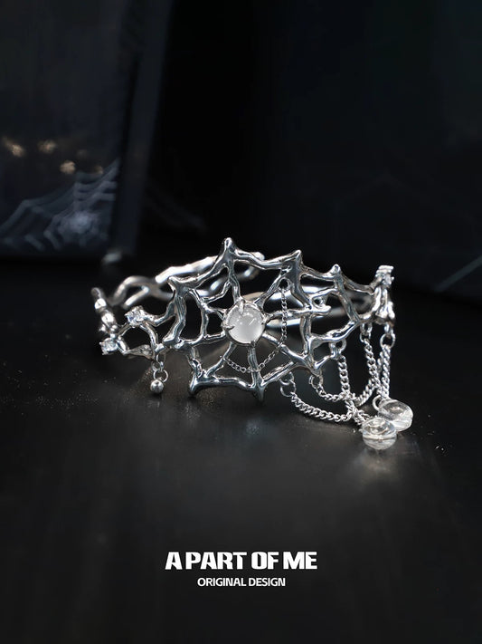 Dark Web 18K Platinum Plating White Agate Glass Beads Tassel Bangle (Armband)