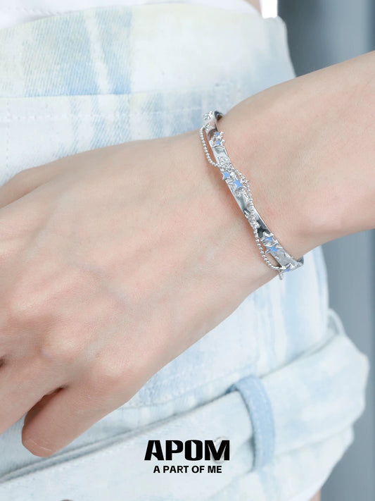 Blue Star S925 Sterling Silver Y2K Retro Bangle Braclet