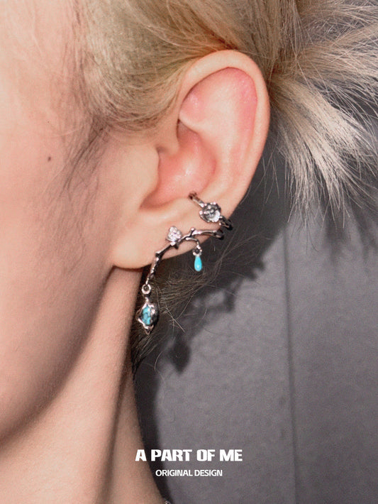 Bitter Heart 18K Platinum Plating Turquoise Pendant Ear Cuffs