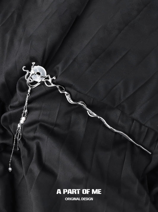 Black Orchid 18K Platinum Platinum Detachable Tassel Faux Wood Hairpin