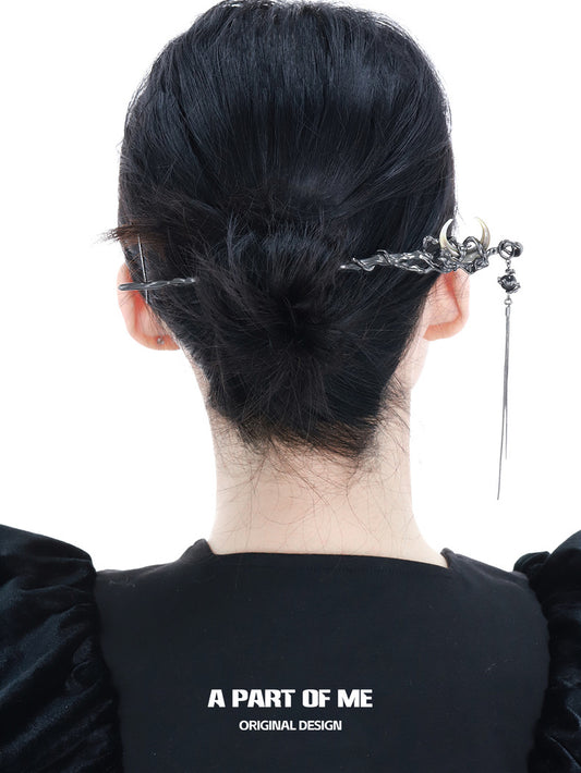 Crow Collection (Sylus's Version) 18K Black Gold Plated Crow & Rose Hairpin