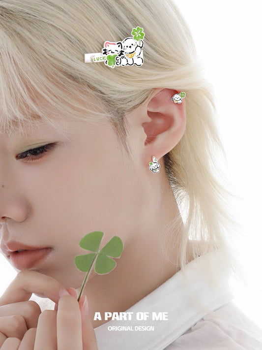 The Lucky Clover Kitten & Puppy 18K Platinum Plating Hair Clip
