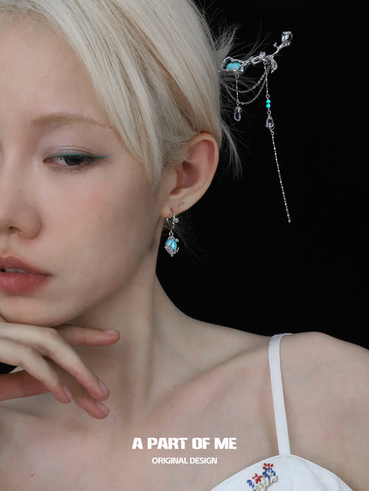 Bitter Heart 18K Platinum Plating Turquoise Tassel Hairpin