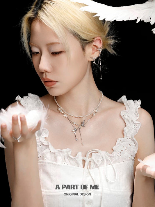 Angel Wings & Halo 18K Platinum Plating Pearl Stack Necklace
