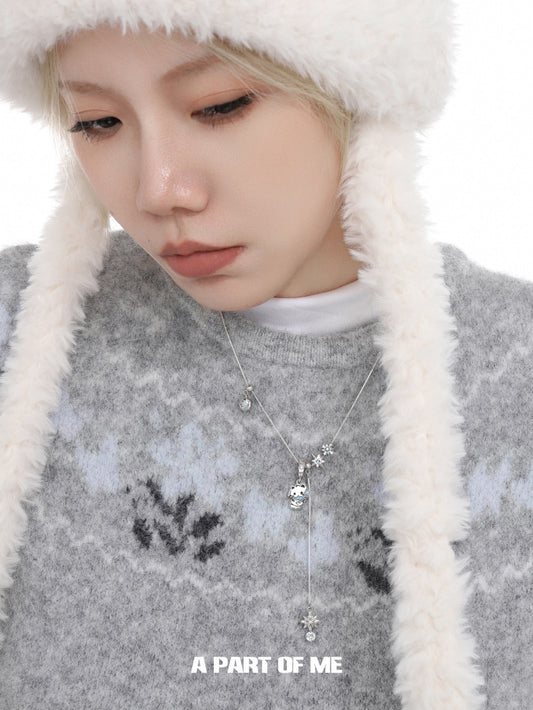 The Winter Kitten 18K Platinum Plating Changeable Cat Pendants Snowflake Necklace