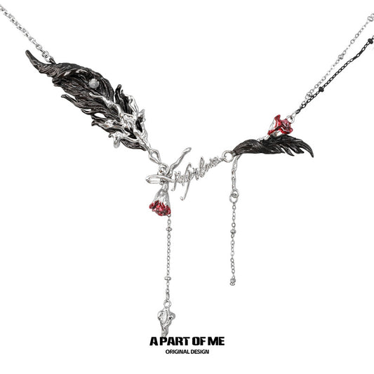 Palpitate 18K Platinum Plating White Agate Bloody Rose & Feather Necklace