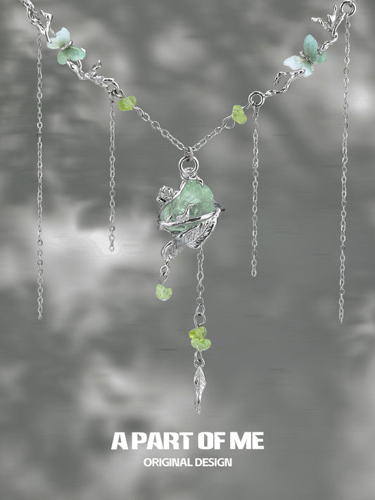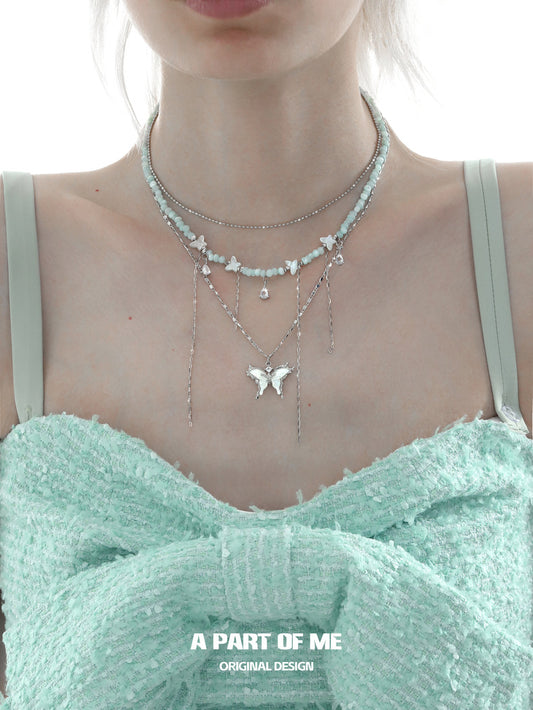 Mint Mambo Butterfly 18K Platinum Plating Beads Choker and Butterfly Pendant Necklace