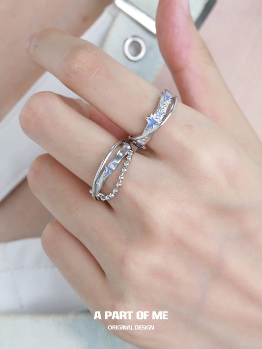 Blue Star S925 Sterling Silver Y2K Retro Rings
