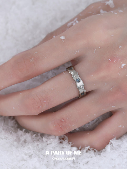 Blue Snowflake S925 Sterling Silver Christmas Couple Rings