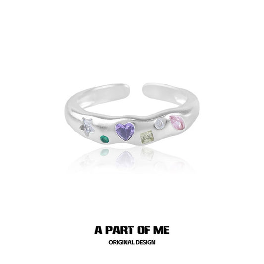 Rainbow Candy S925 Sterling Silver Adjustable Couple Ring
