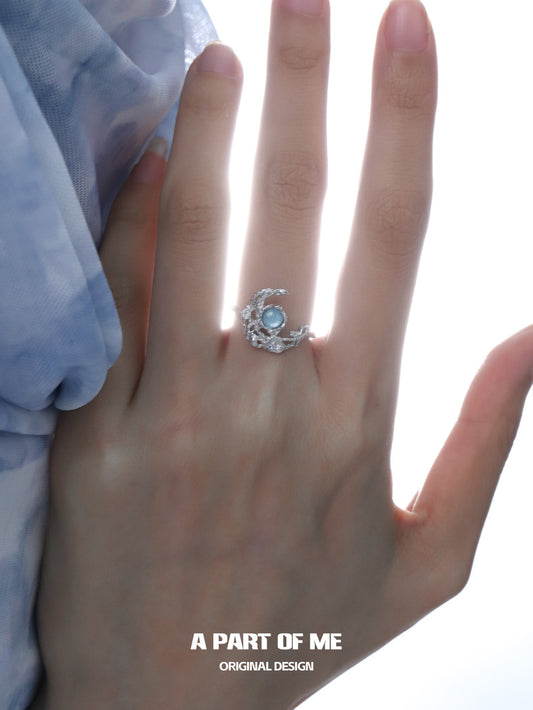 Moonlight Faust S925 Sterling Silver Moon Zircon Adjustable Rings