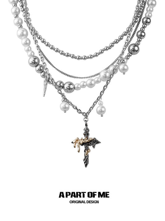 American Style 18K Platinum Platinum Baroque Pearl & Cross Necklace Set