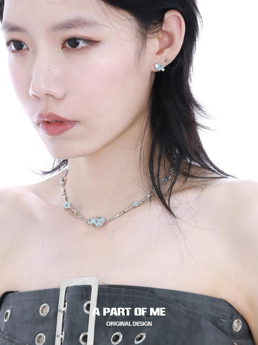 Blue Heart 18K Platinum Plating Cubic Zirconia Stud Earrings