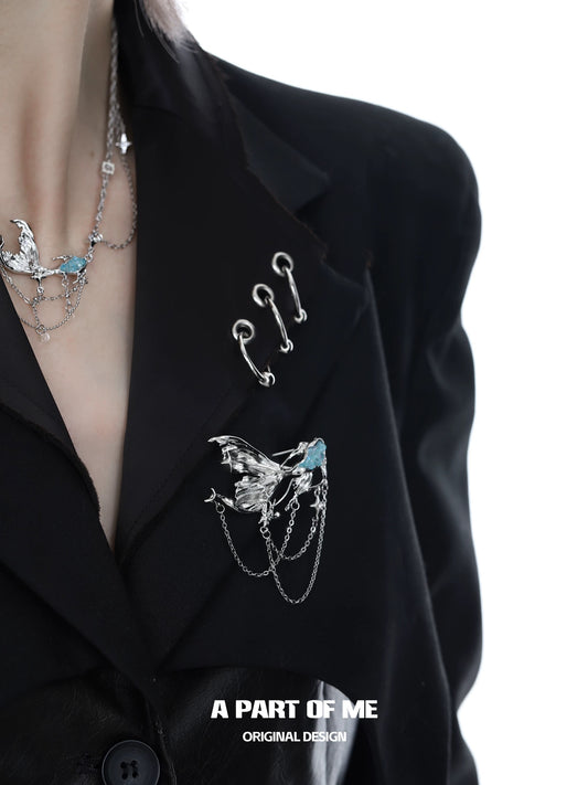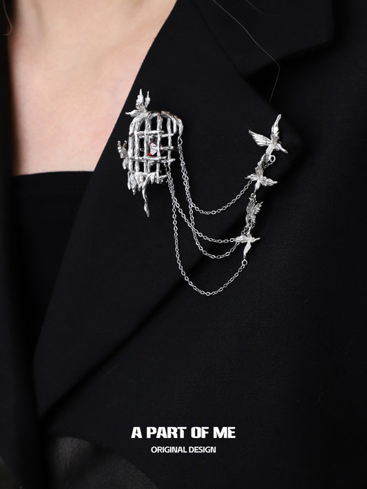 鳩とカラス 18Kプラチナメッキ フェザータッセルブローチ