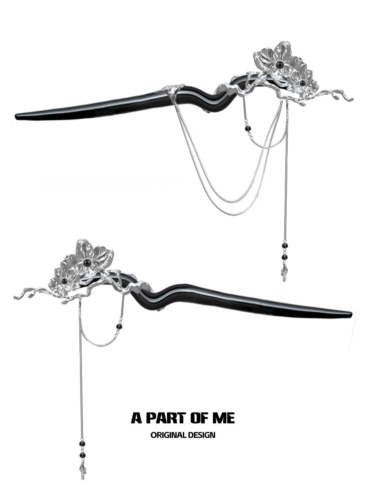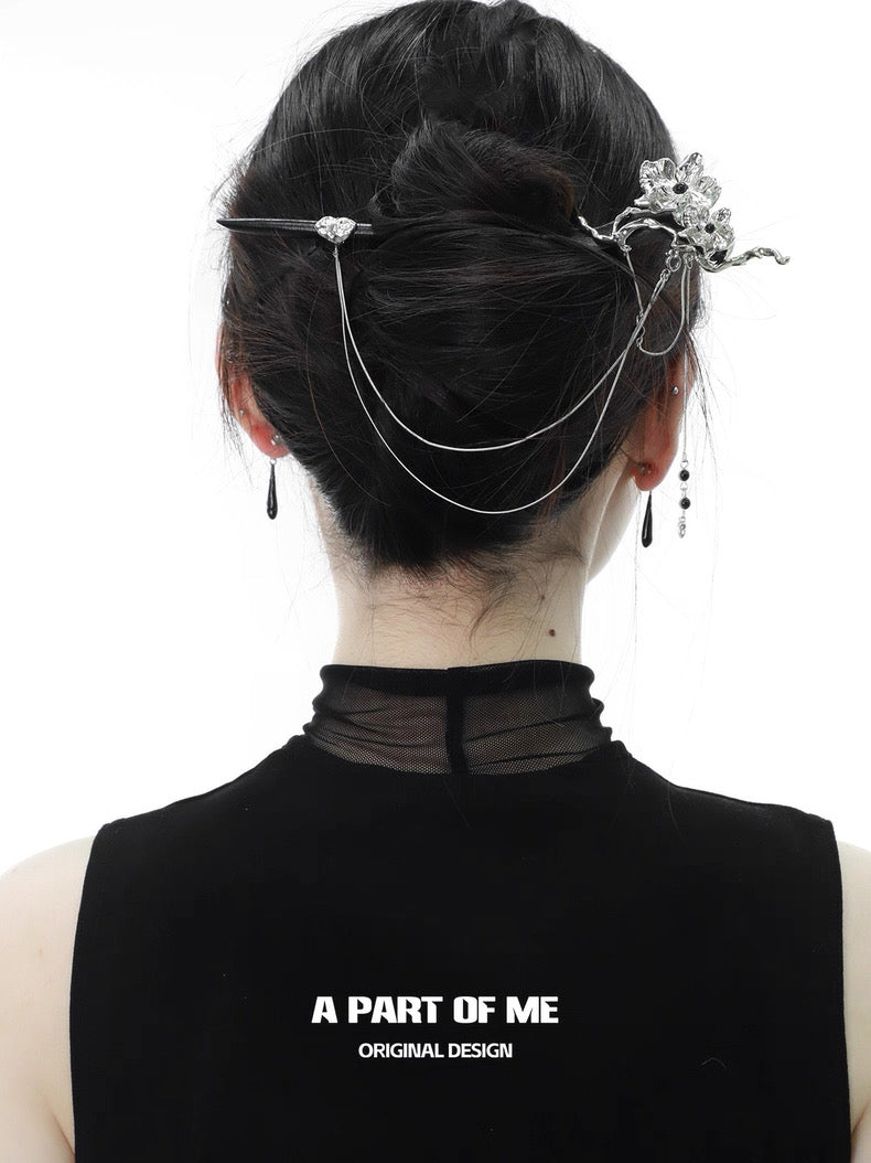 Black Orchid 18K Platinum Platinum Detachable Tassel Faux Wood Hairpin