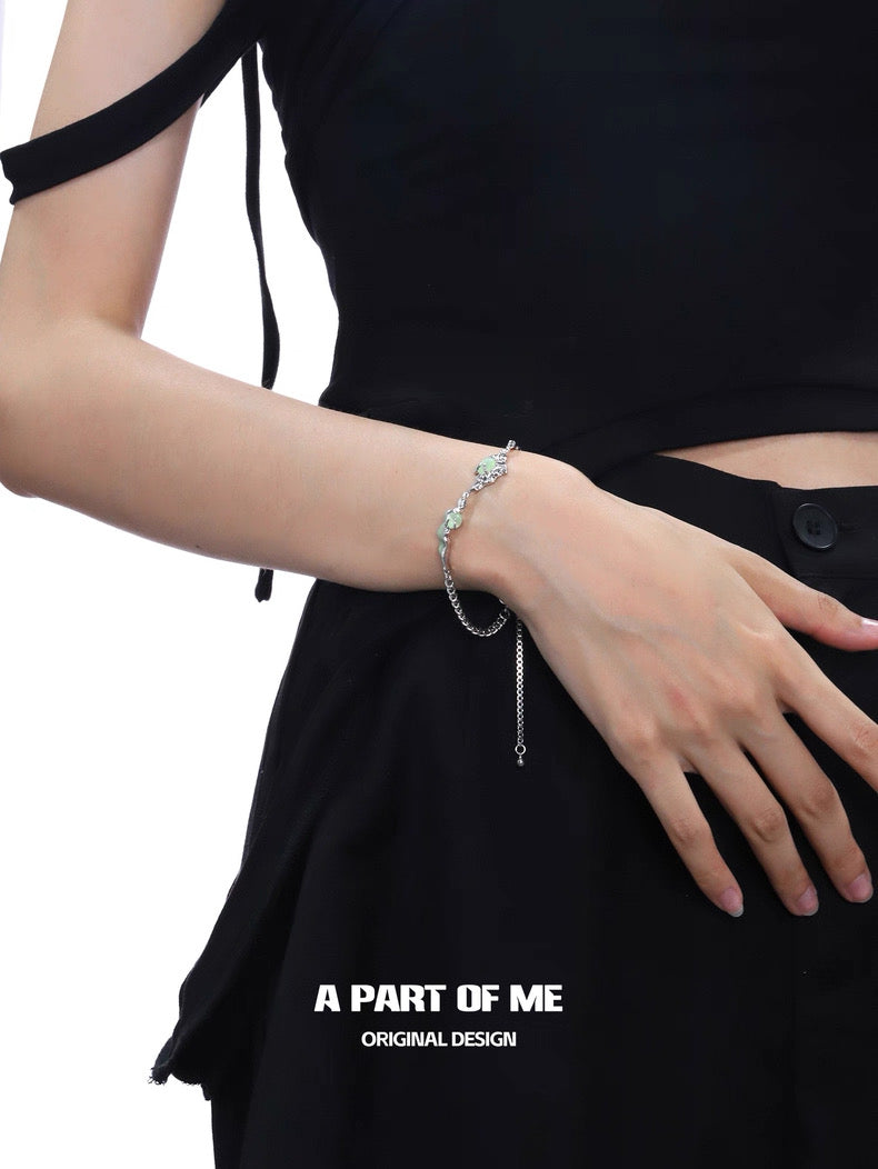 Oasis Collection 18K Platinum Plating Green Cat Eye Stone Slider Bracelet