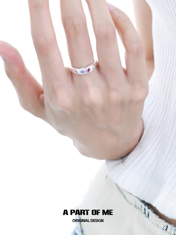 Rainbow Candy S925 Sterling Silver Adjustable Couple Ring