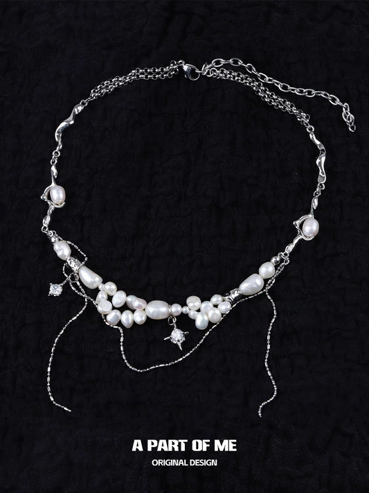 Baroque Pearl 18K Platinum Plating Tassel Choker