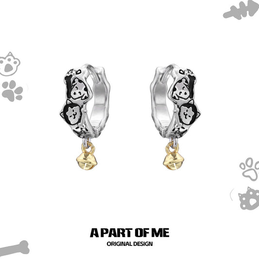 그래피티 캣 & 도그 18K 플래티넘 플레이팅 허기스 귀걸이