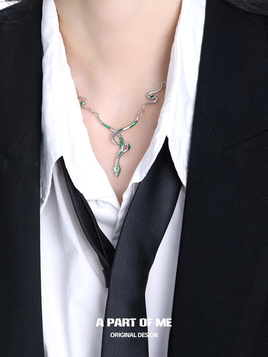 슬리데린 컬렉션 18K 플래티넘 도금 태슬 뱀 목걸이