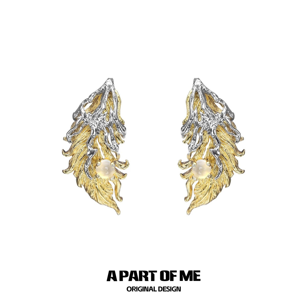 팰피테이트 18K 플래티넘 도금 화이트 아게이트 깃털 스터드 귀걸이