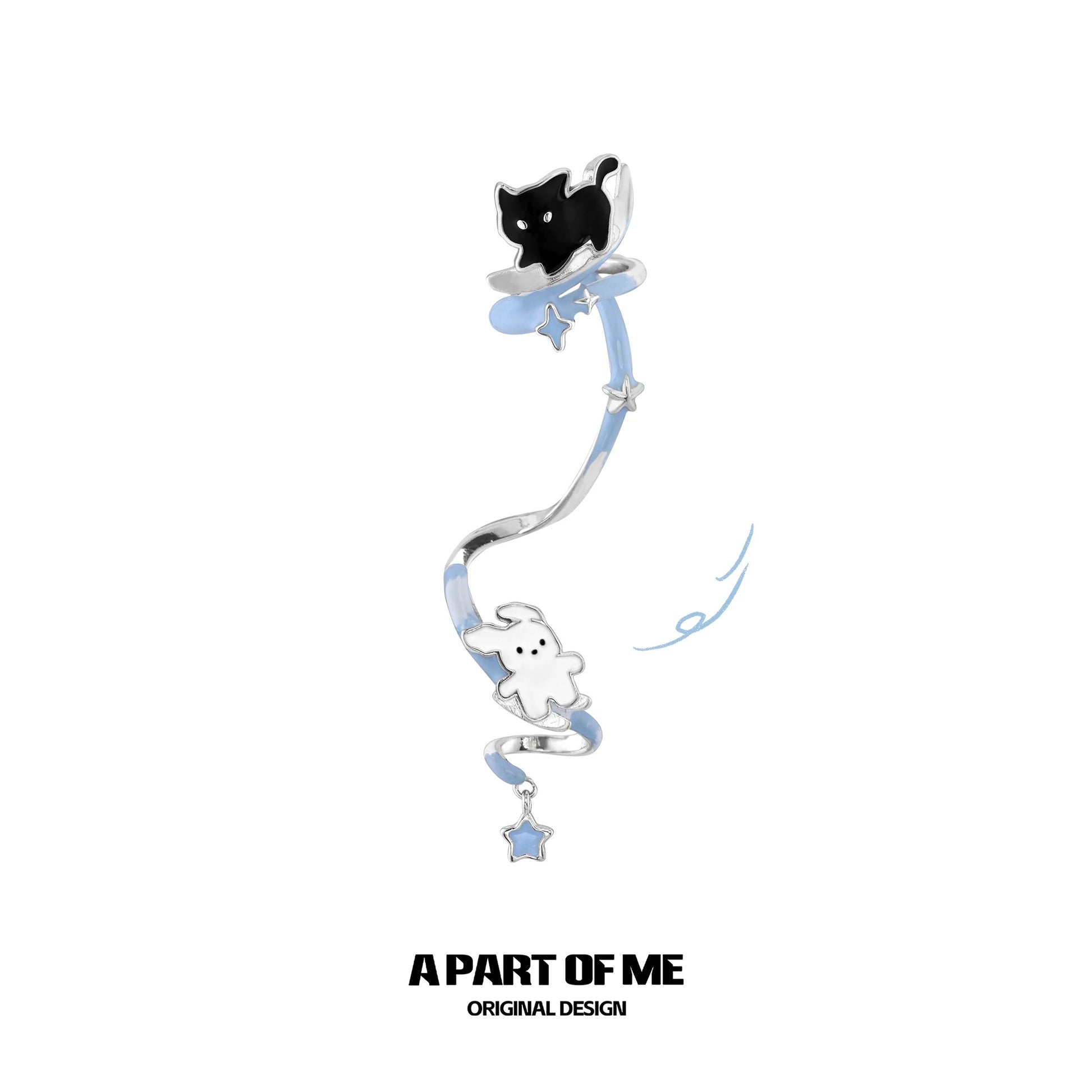 Skating in the Snow 18K Platinum Plating Black Cat & White Dog Detachable Earrings & Cuffs