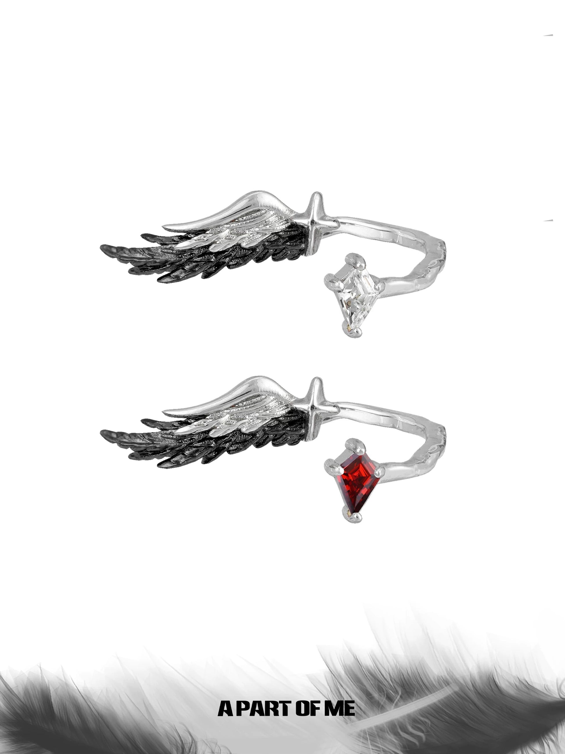 A Love Story Between a Dove & a Crow S925 Sterling Silver Feather Adjustable Rings
