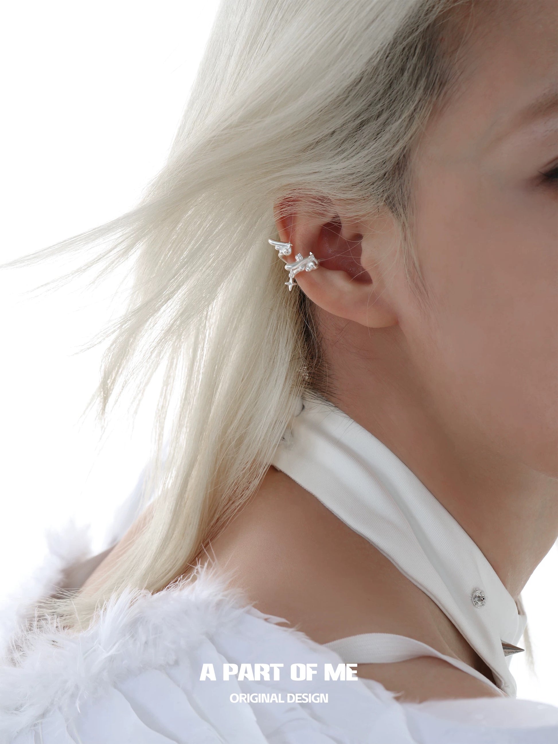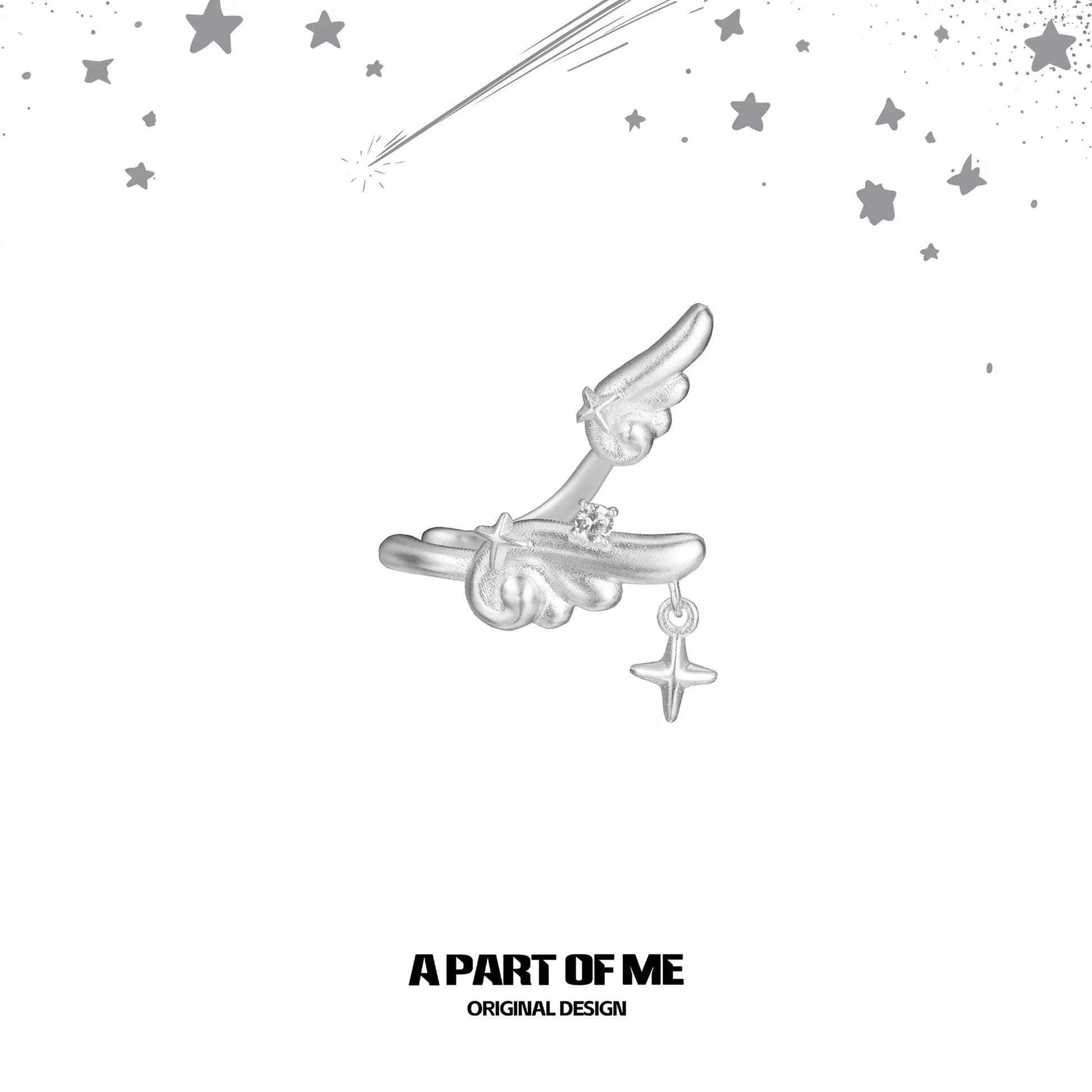 The fluid wing form wraps elegantly around the ear, while a delicate star charm sways softly with each movement. Thoughtfully designed to bring a subtle sense of motion and radiance, it captures the dreamlike essence of flight.