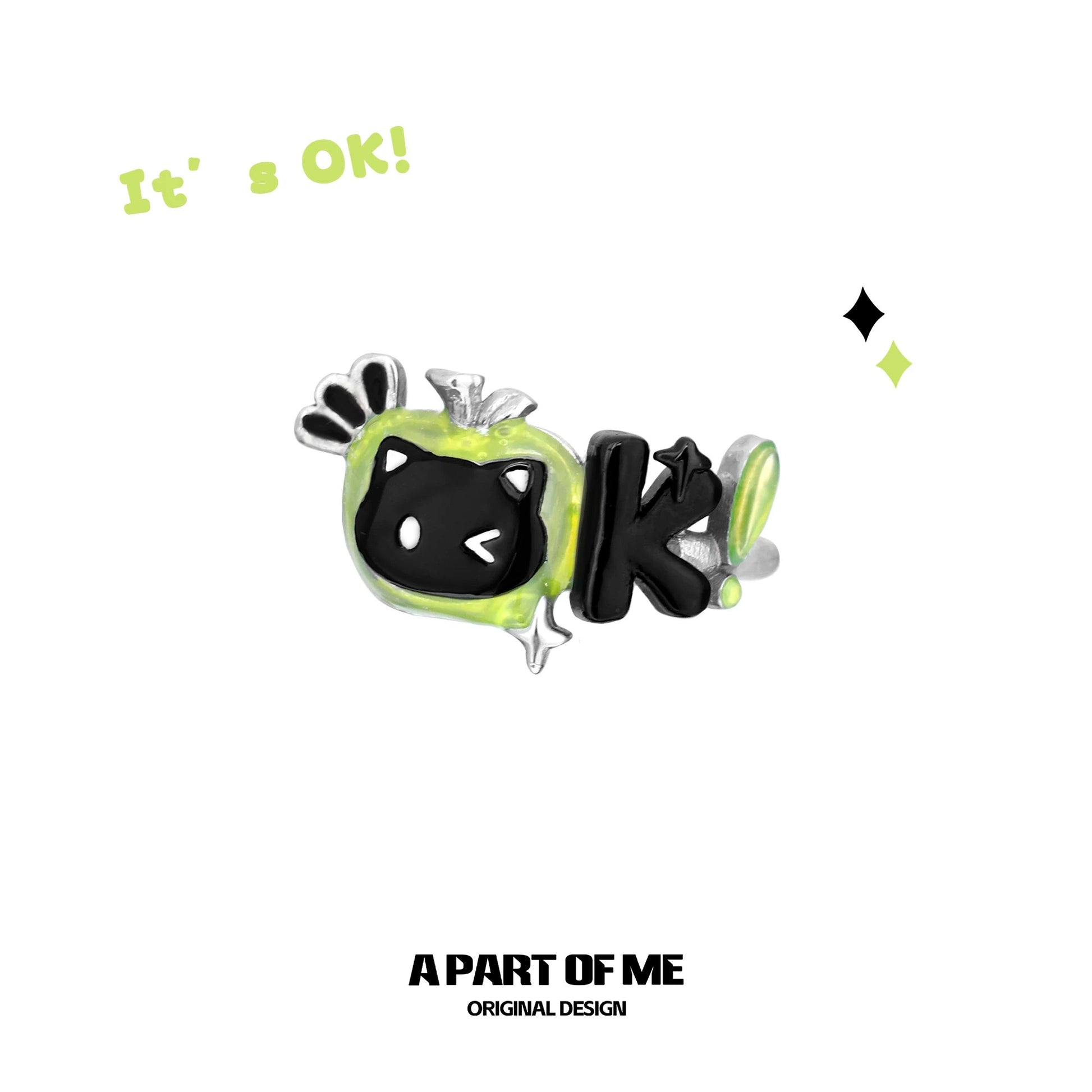 Apple Cat 18K Platinum Plating Black Cat & Green Apple Ear Cuffs