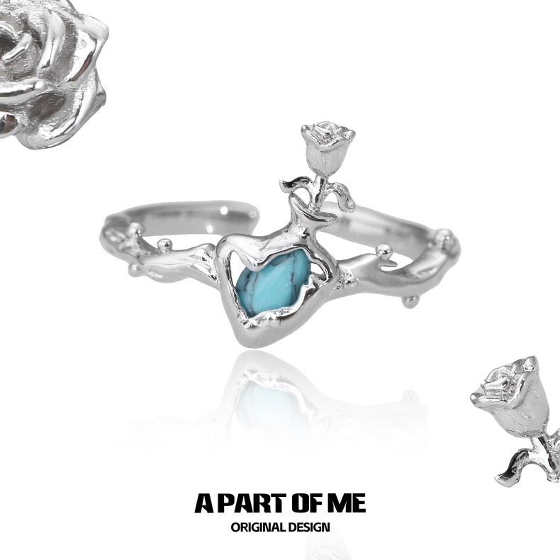 Each ring is meticulously crafted from high-quality S925 silver, ensuring both durability and a refined finish. The centerpiece - turquoise - adds a serene, earthy charm, while the tiny rose and branch-like band details speak to thoughtful artistry and romantic symbolism.