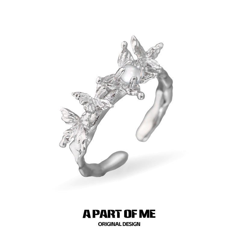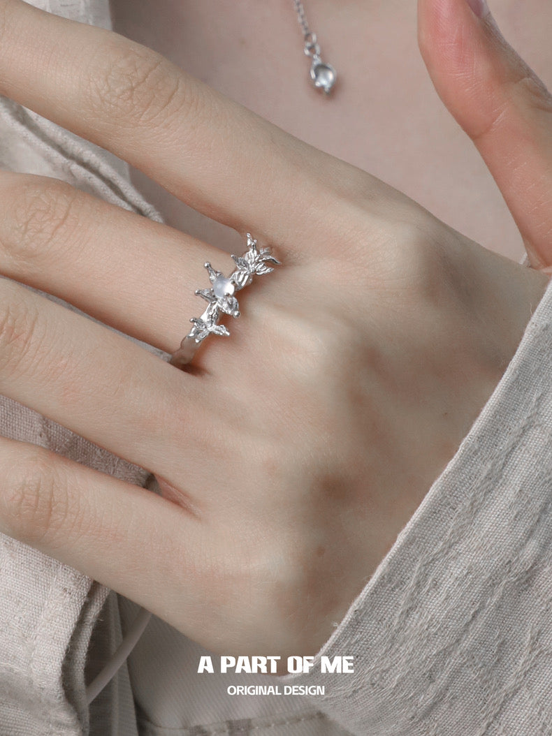 Butterfly Silhouette S925 Sterling Silver White Agate Butterfly Resizable Ring