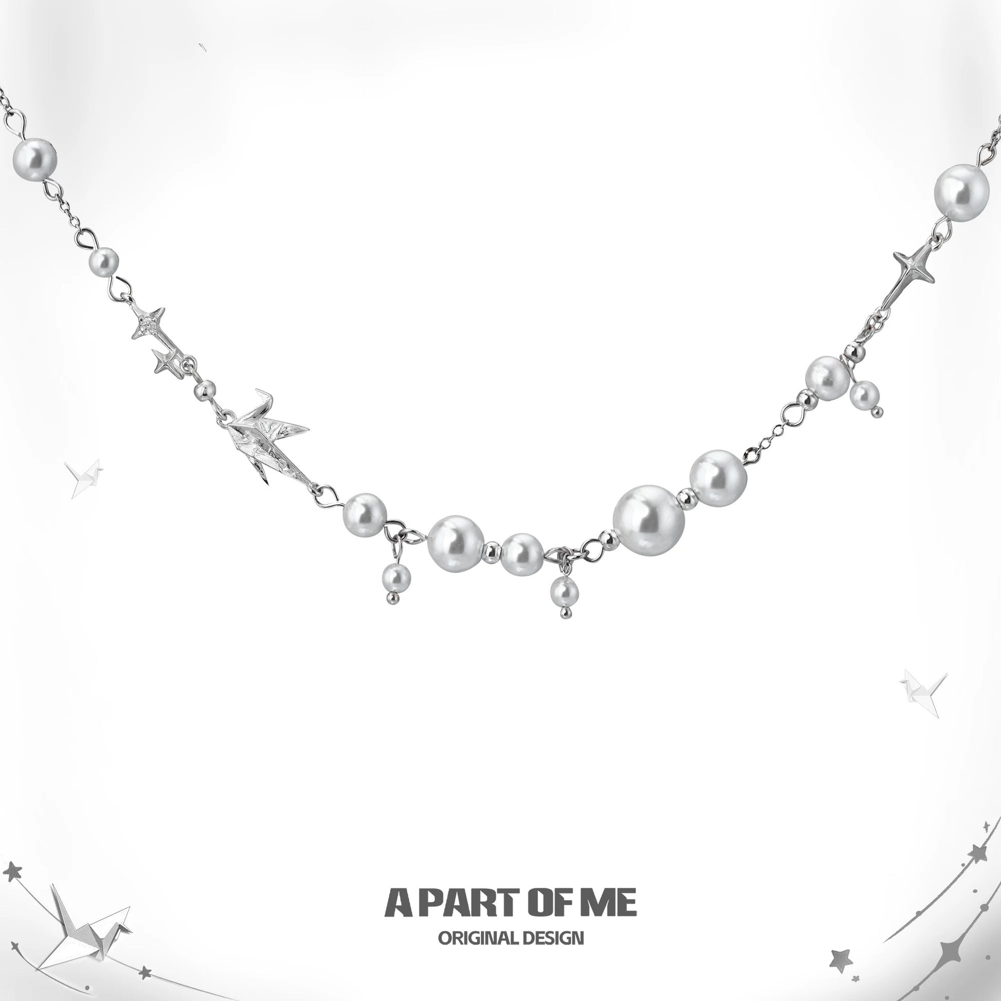 Corigami Era 18K Platinum Plating Paper Crane & Pearl Necklace