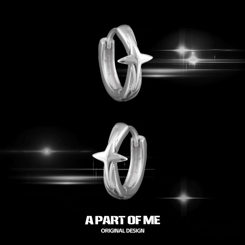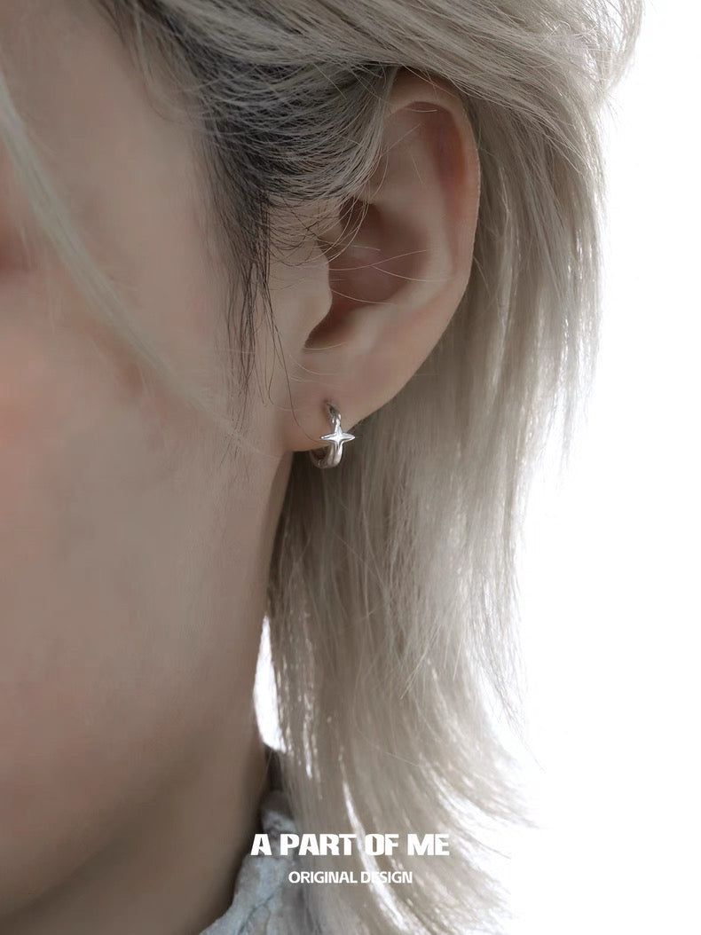 Four Point Star S925 Sterling Silver Huggie Earrings