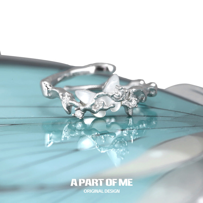 Fritillary S925 Sterling Silver Natural Shell Butterfly Adjustable Ring