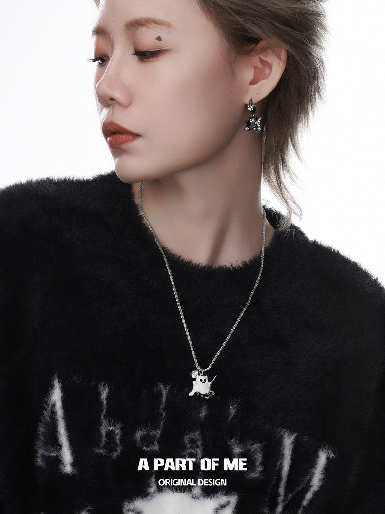 Ghost Kitten 18K Platinum Plating Huggies Earrings