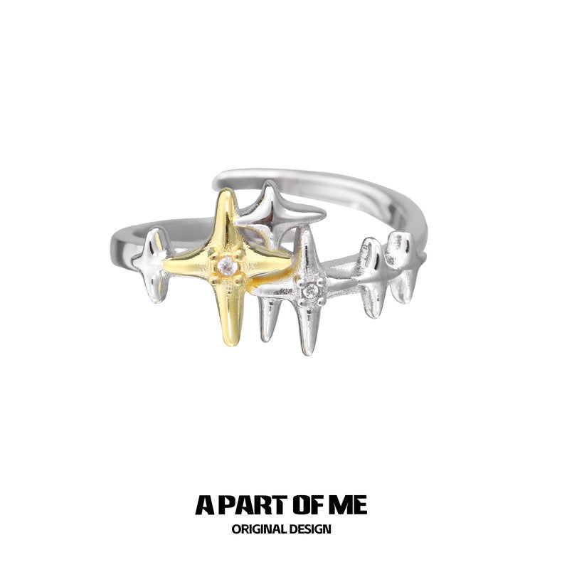 Golden Star S925 Sterling Silver Adjustable Ring