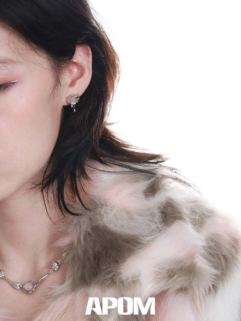 Mermaid Tear 18K Platinum Plating Pink Shell Stud Earrings & Ear Clips