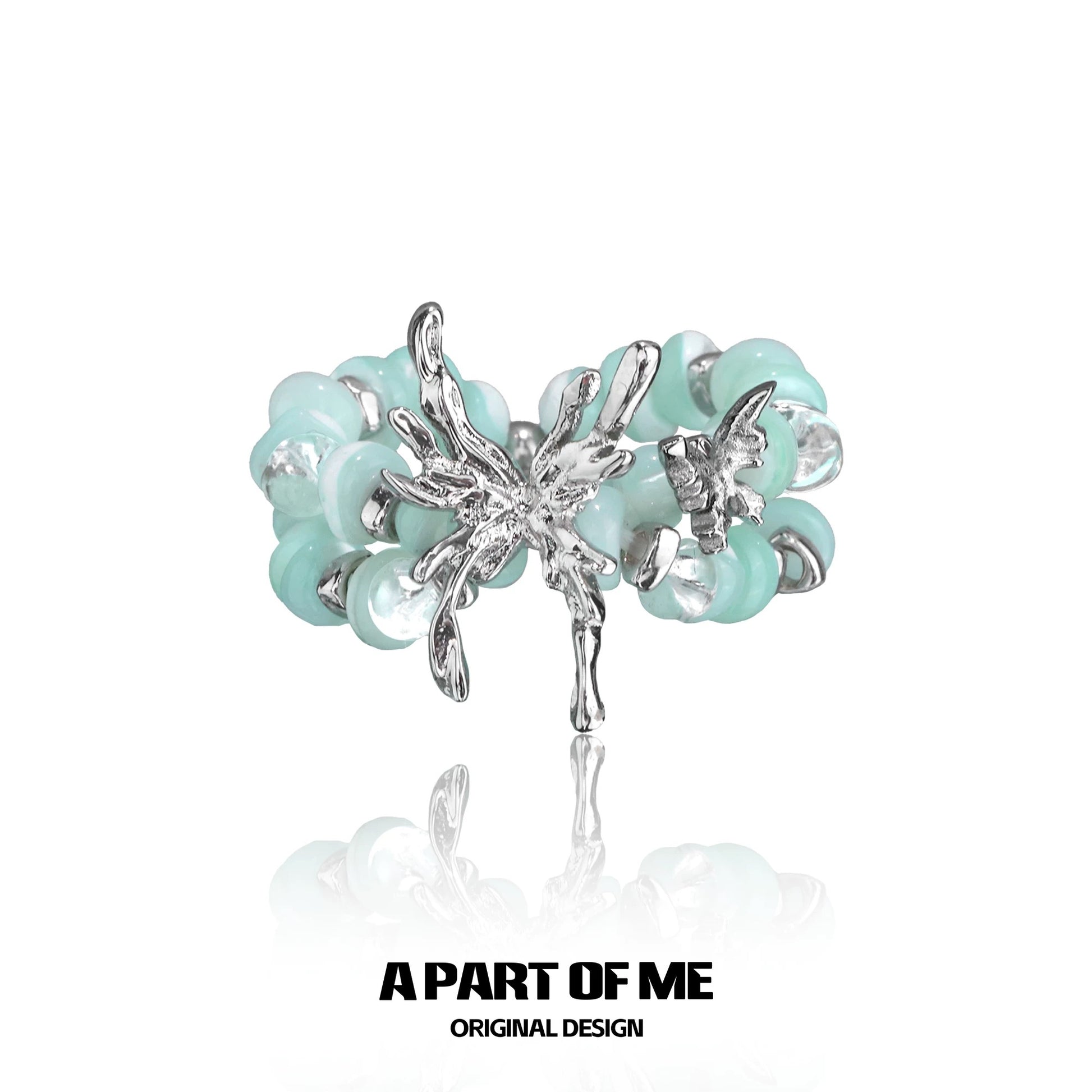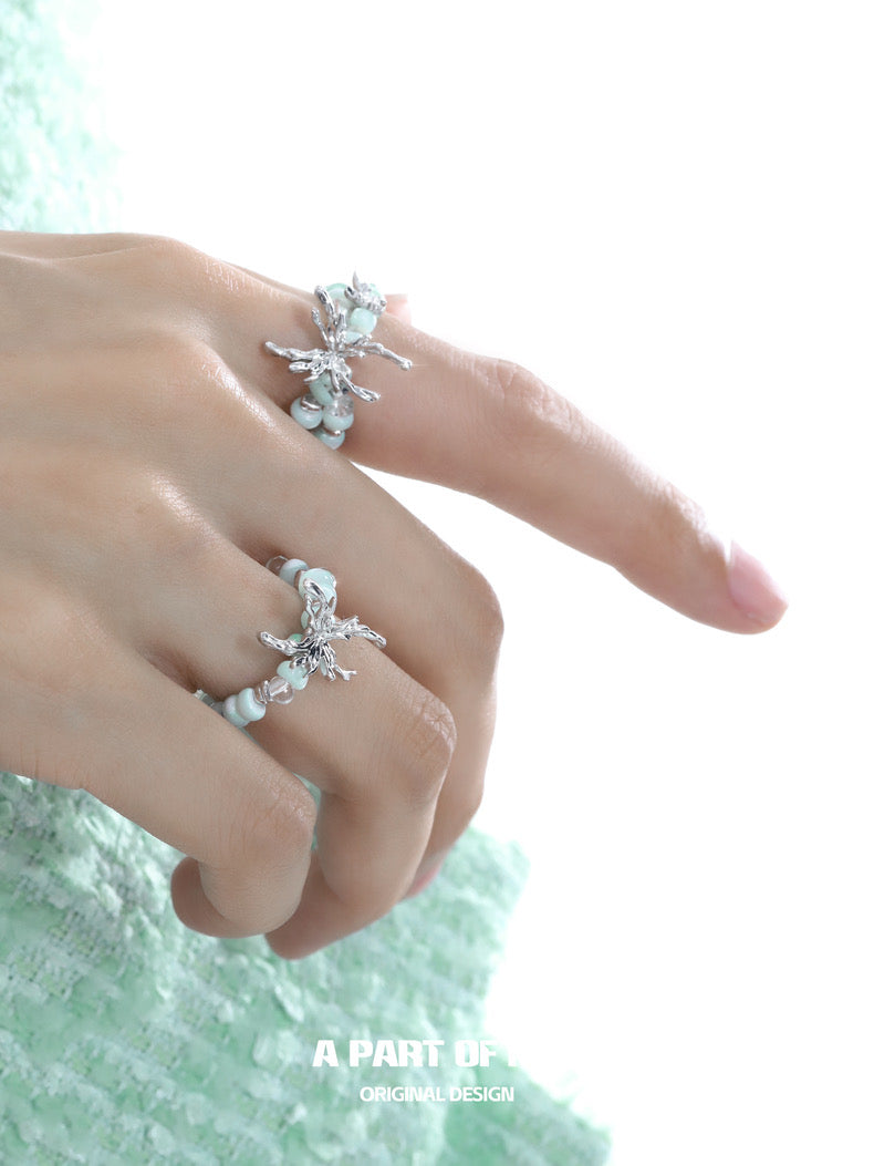 Mint Mambo Butterfly S925 Sterling Silver Bead Butterfly Resizable Rings
