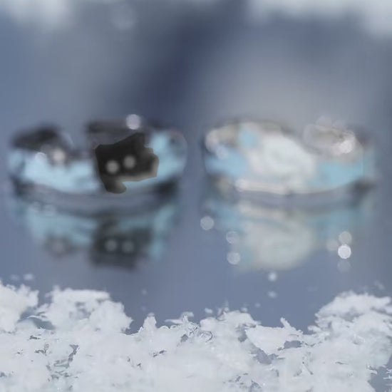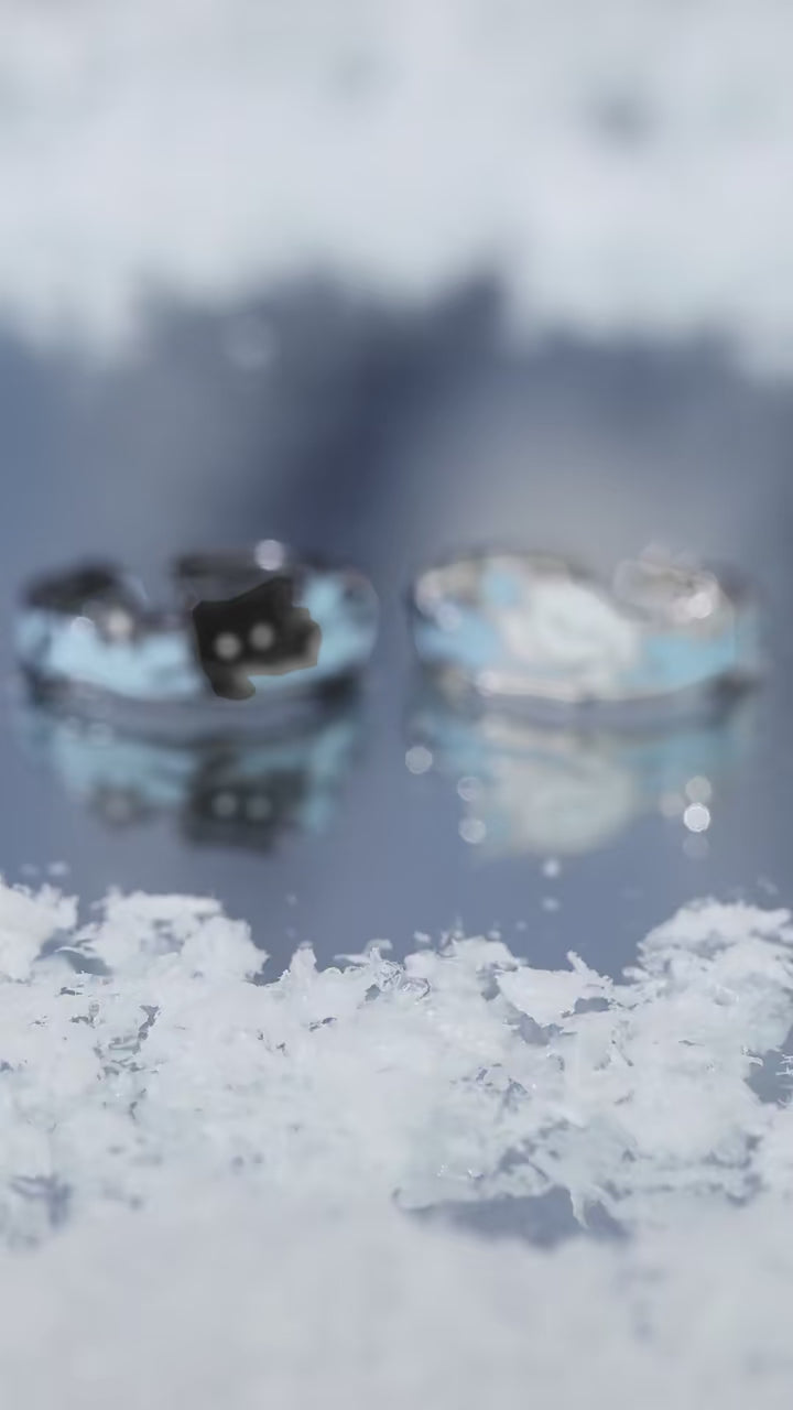 Picking Stars in the Snow S925 Sterling Silver Black Cat & White Puppy Couple Ring