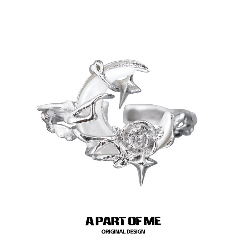 Rose on the Moon S925 Sterling Silver Natural Shell Adjustable Ring