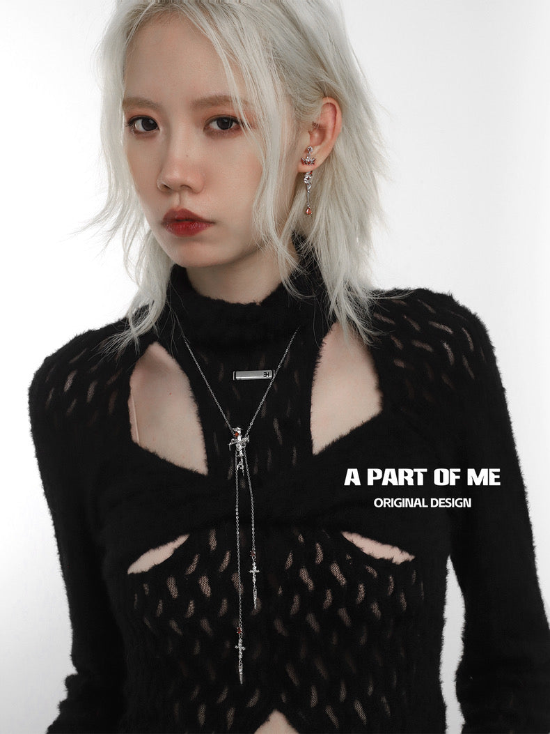 Rose Thorn on Nail Cross 18K Platinum Plating Huggies Lariat Necklace