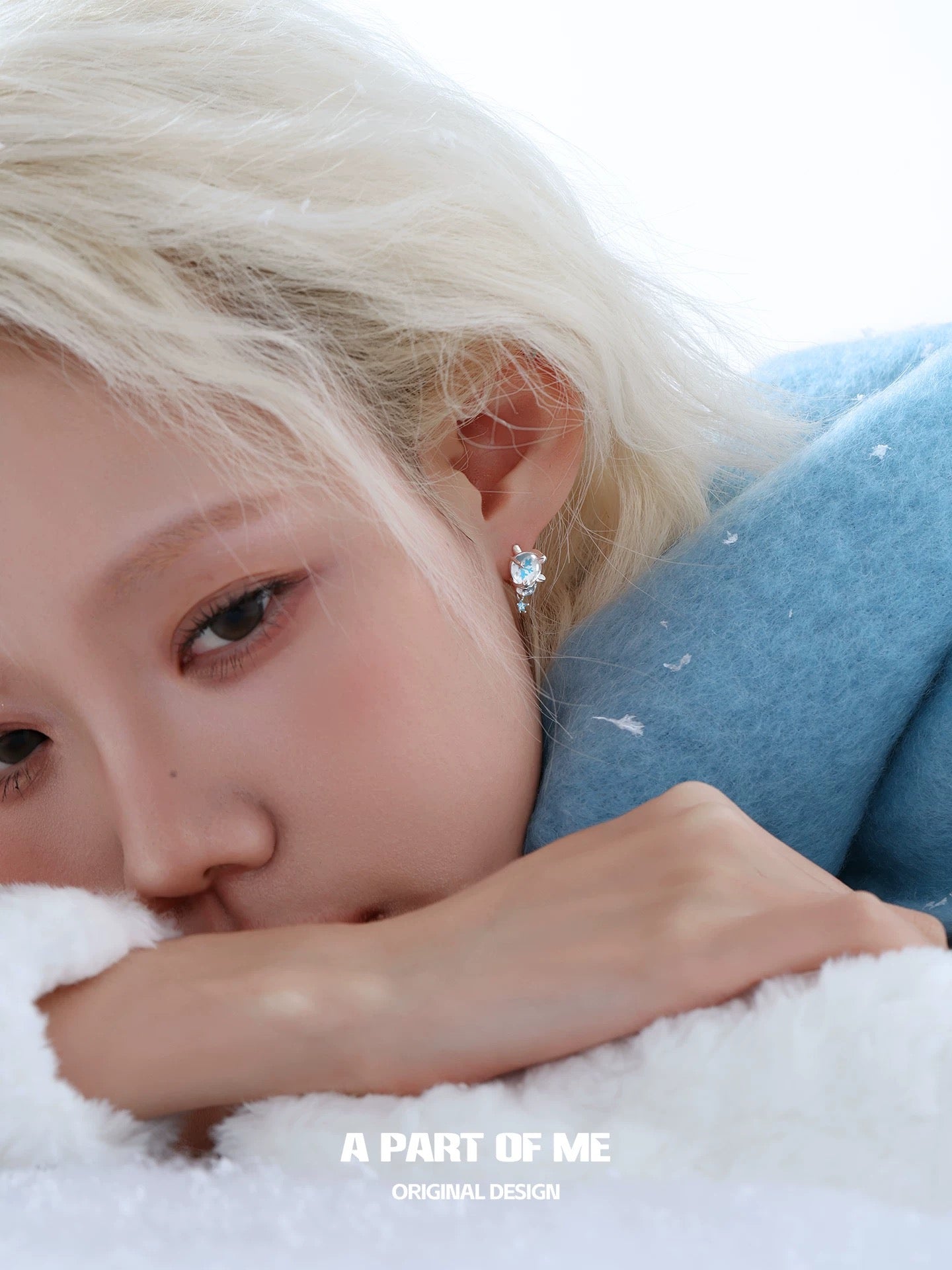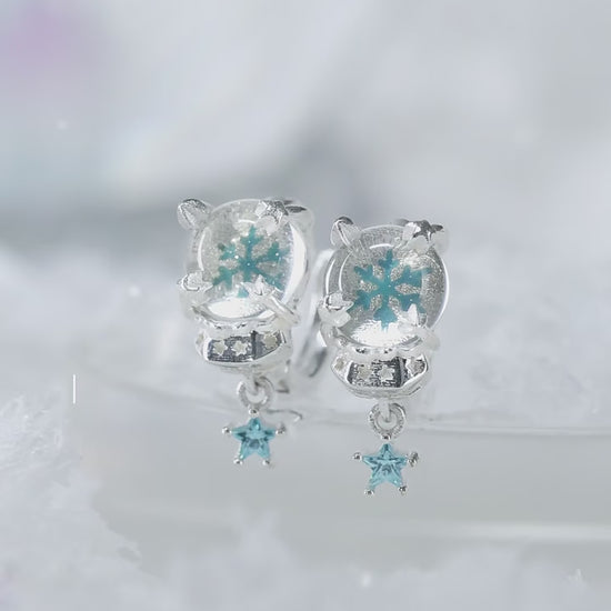 Snowflake Crystal Ball 18K Platinum Plating Crystal Glass Huggies Earrings