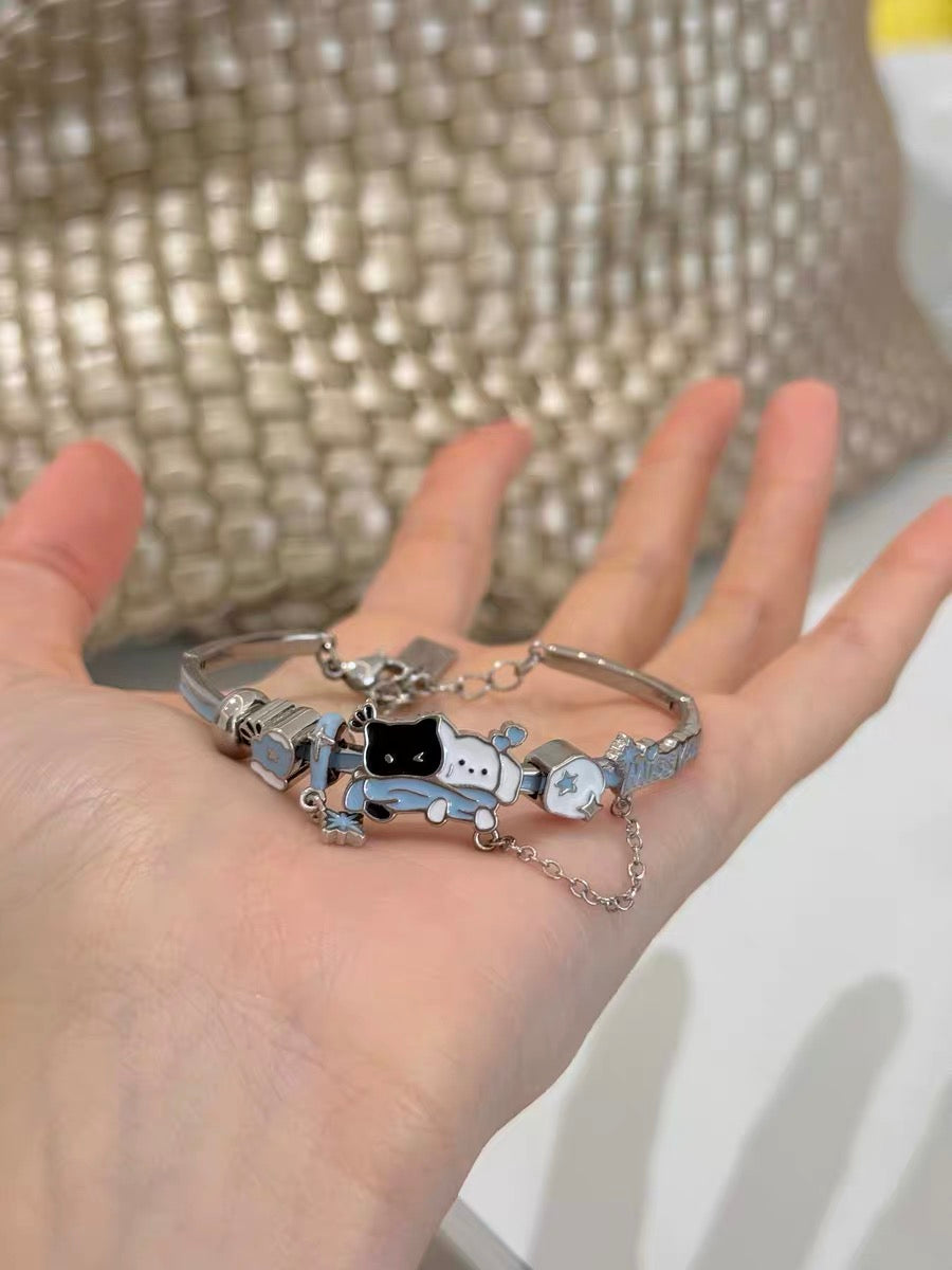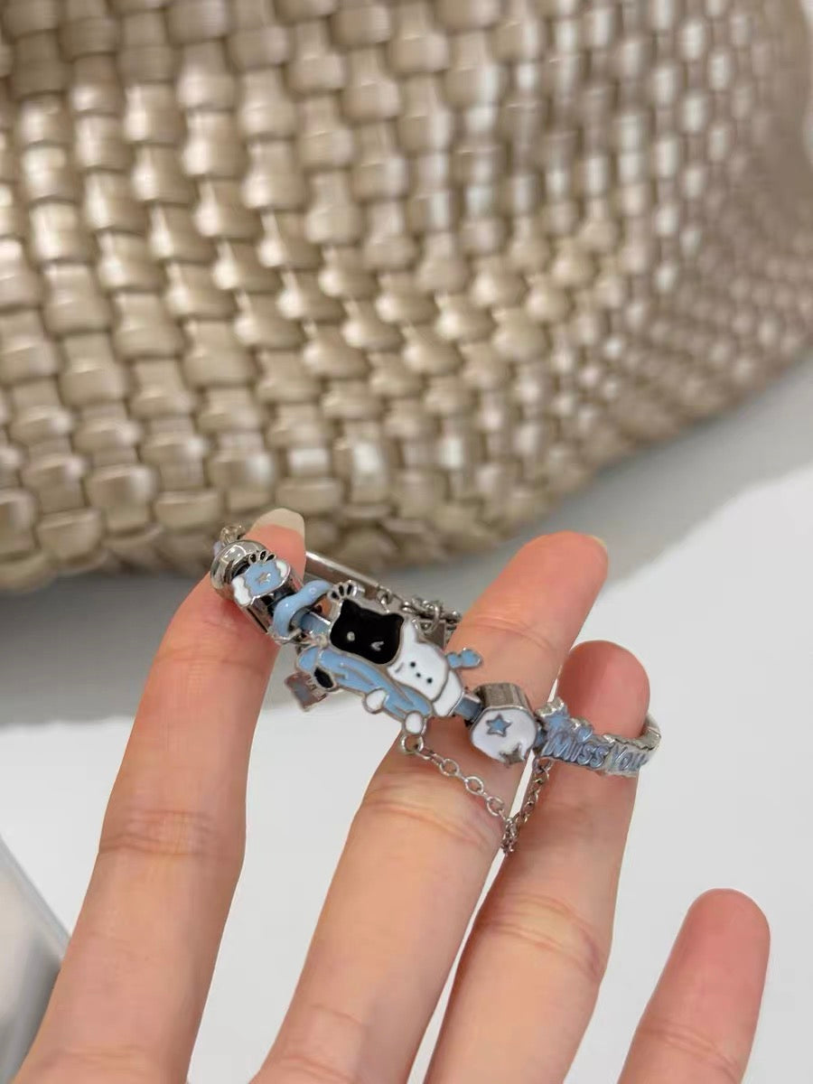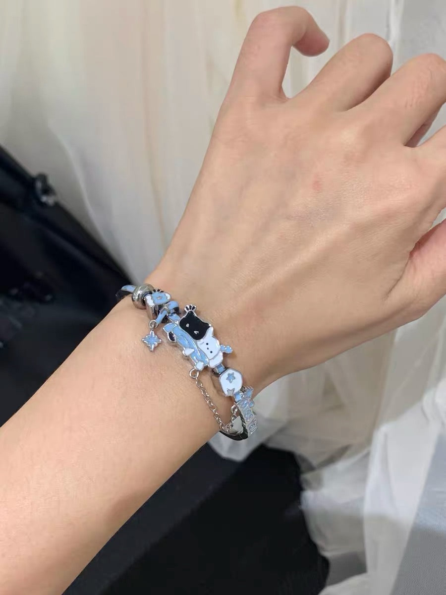 Snowy Black Cat & White Dog 18K Platinum Plating Bracelet