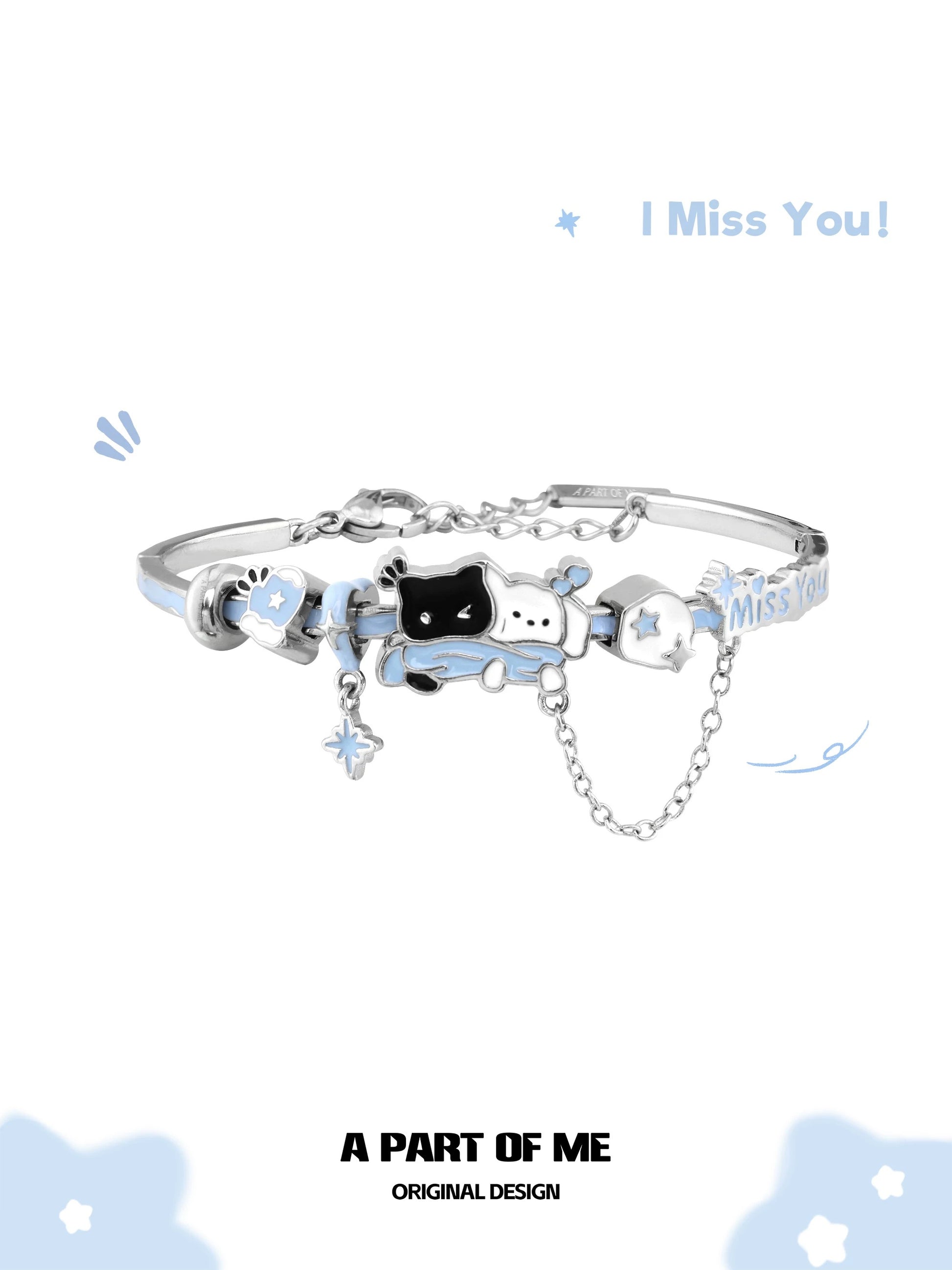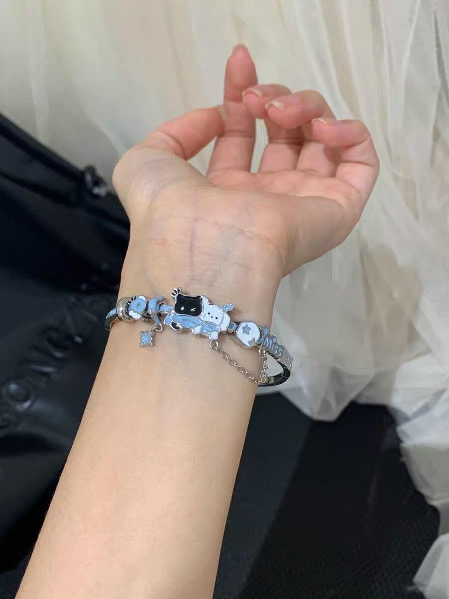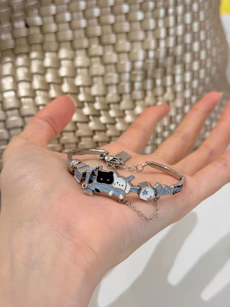 Snowy Black Cat & White Dog 18K Platinum Plating Bracelet