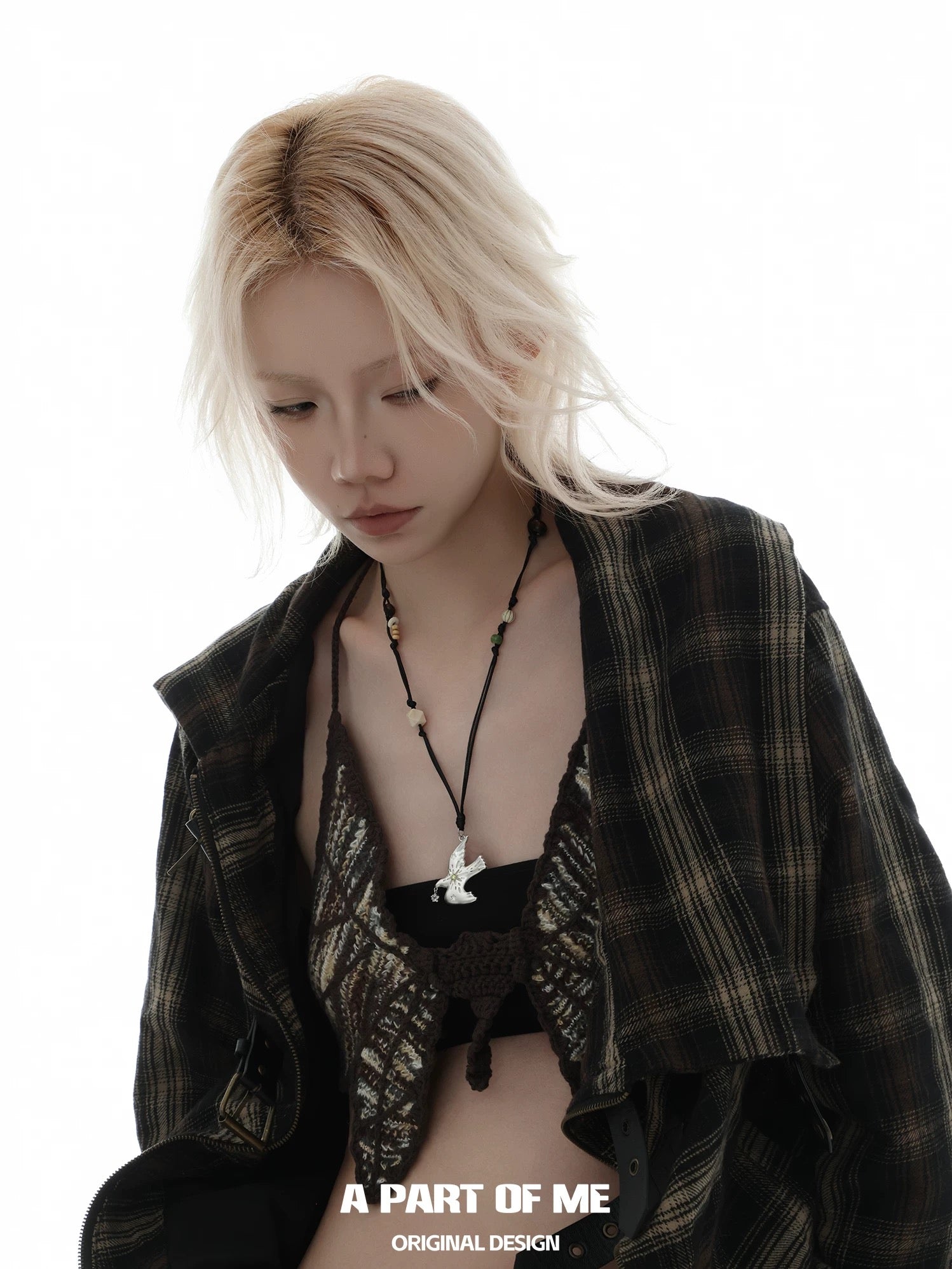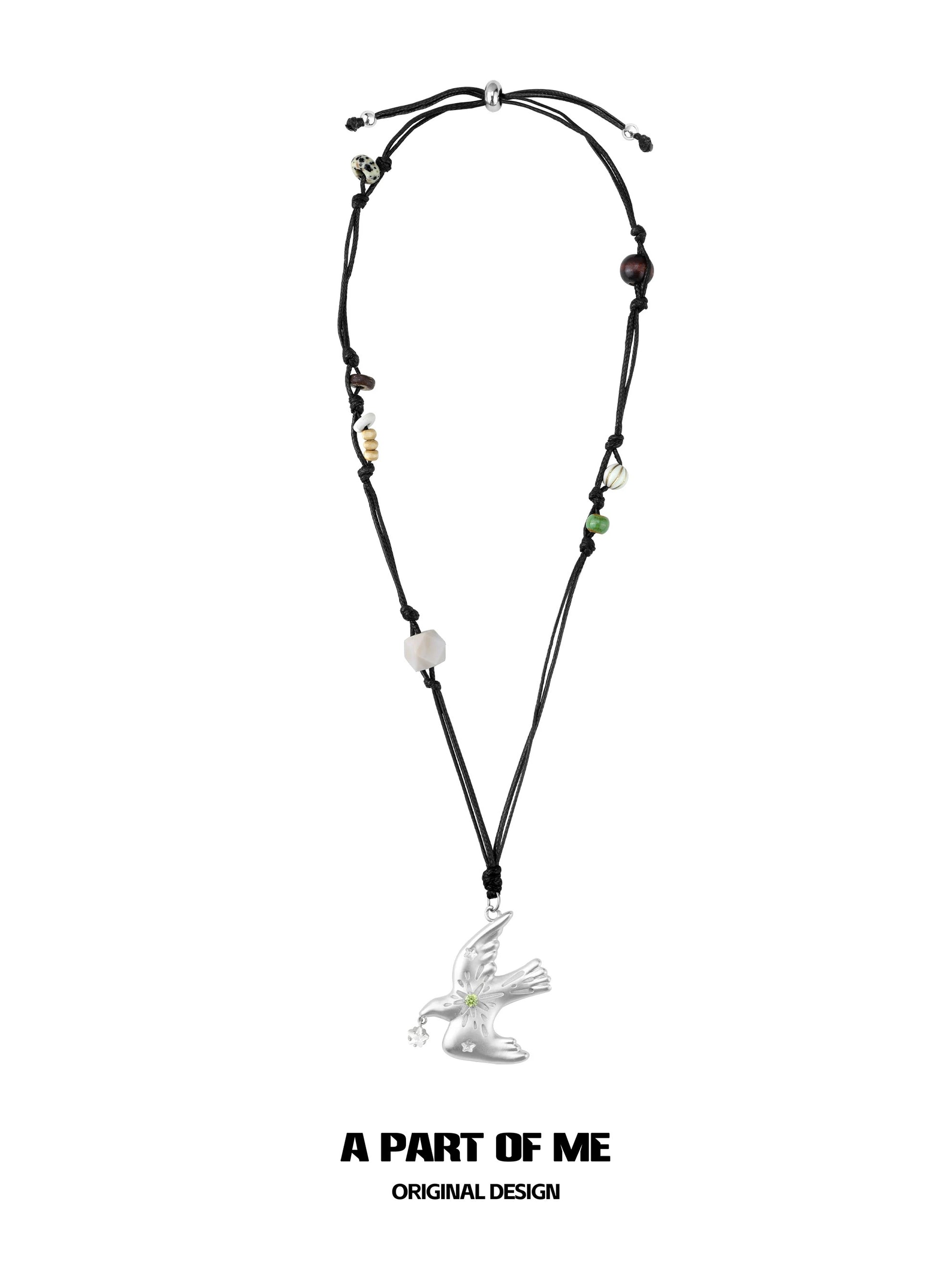 Starlit Vitality Black Cord 18K Platinum Plating Spring Bird Necklace