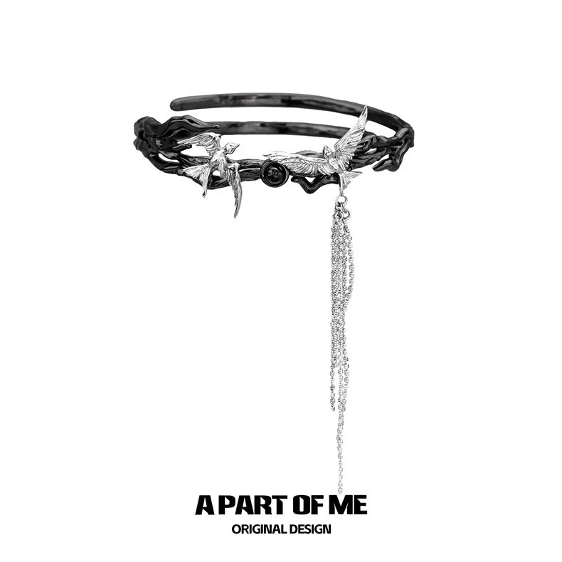 Stray Birds 18K Platinum Plating Black/White Agate Armband/Armlet